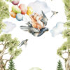 Nodig een vrolijke beer, gedragen door kleurrijke ballonnen, uit naar de kamer van uw kind! Deze charmante afbeelding staat garant voor een fantasierijke reis door de lucht, vol glimlachen, zorgeloosheid en delicate emoties.